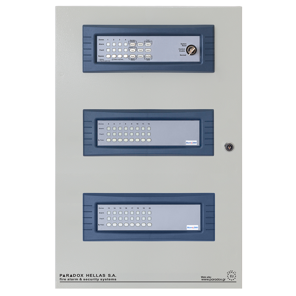 20 Ζώνες σύνδεσης ανιχνευτών ή κομβίων αναγγελίας φωτιάς επιτηρούμενες με EOL αντιστάσεις.